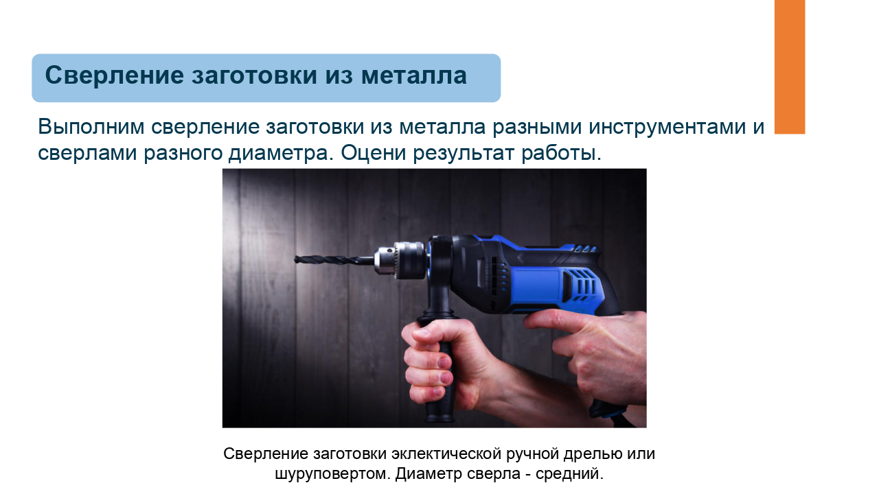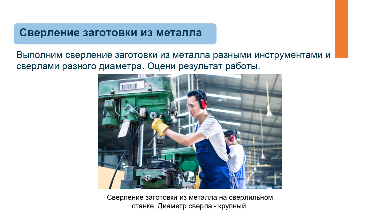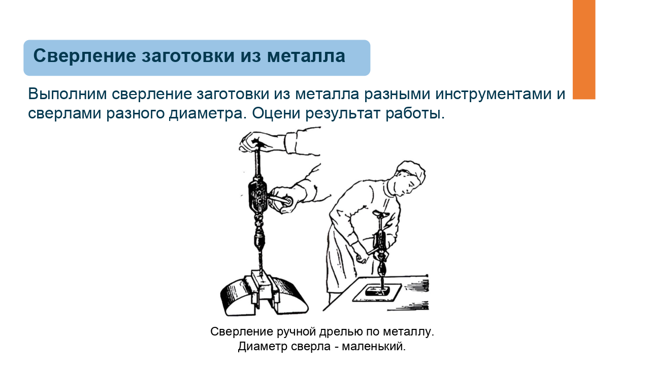 Здесь доступен предпросмотр презентации из одного урока по предмету «Технология» для 6 класса по теме «Технологии получения отверстий в заготовках из металла. Сверление». Комбинированный урок. На уроке предусмотрено использование следующих типов электронных образовательных материалов: «Галерея изображений (группа изображений по одной тематике)», «Изображение или фото», «Инструкция по выполнению практической работы», «Кейсы по работе с информацией».