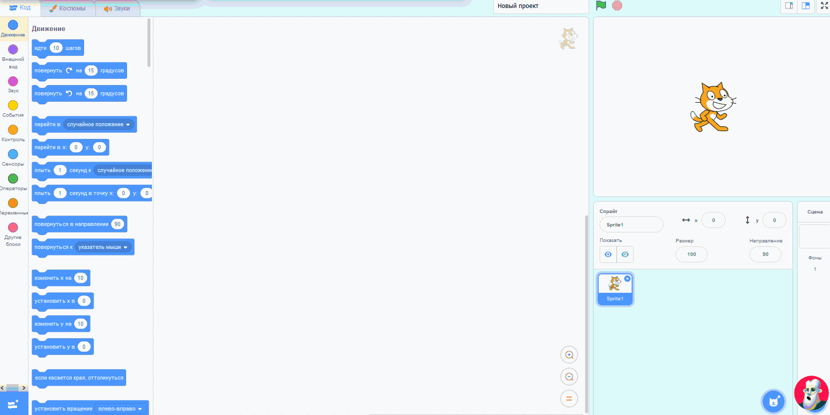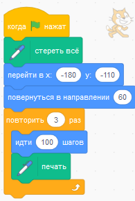 Команда «опустить перо» помогает начать рисовать из точки, в которой находится спрайт.