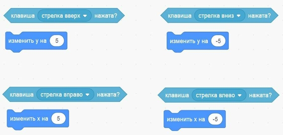 Подумай, как запрограммировать движение вверх. Какую координату будем изменять?
